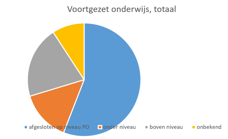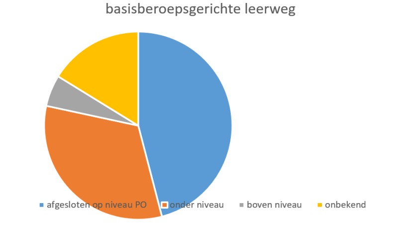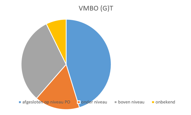 Deze cijfers, die hieronder als cirkeldiagram staan weergegeven, lijken aan te tonen dat voor veel leerlingen de definitieve niveaukeuze te vroeg komt. Dit is een van de belangrijkste redenen om te kiezen voor een onderwijsvorm, waarbij het keuzemoment wordt uitgesteld.