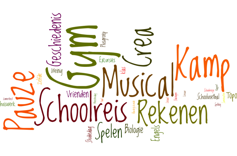(*=hoe groter het woord wordt weergegeven, hoe vaker dit antwoord is gegeven):