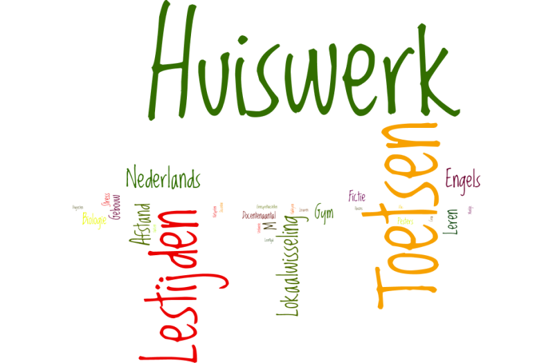 De leerlingen in het voortgezet onderwijs vroegen we 'Wat vind je het minst leuk aan het voortgezet onderwijs?'. Hieronder staan de reacties: